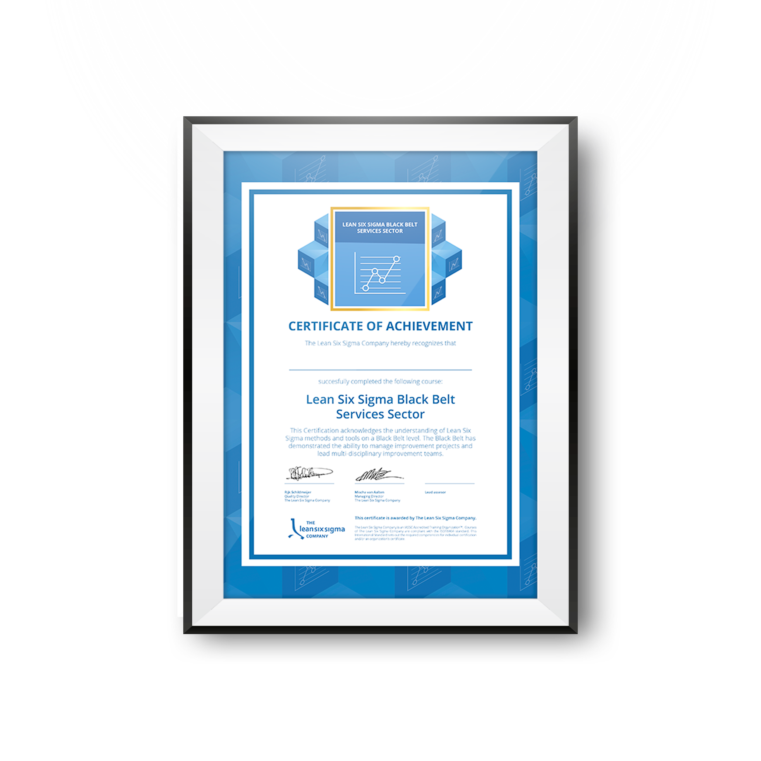 Depois de concluir o exame com sucesso, receberá o certificado reconhecido internacionalmente, da parte teórica de Lean Six Sigma Black Belt.